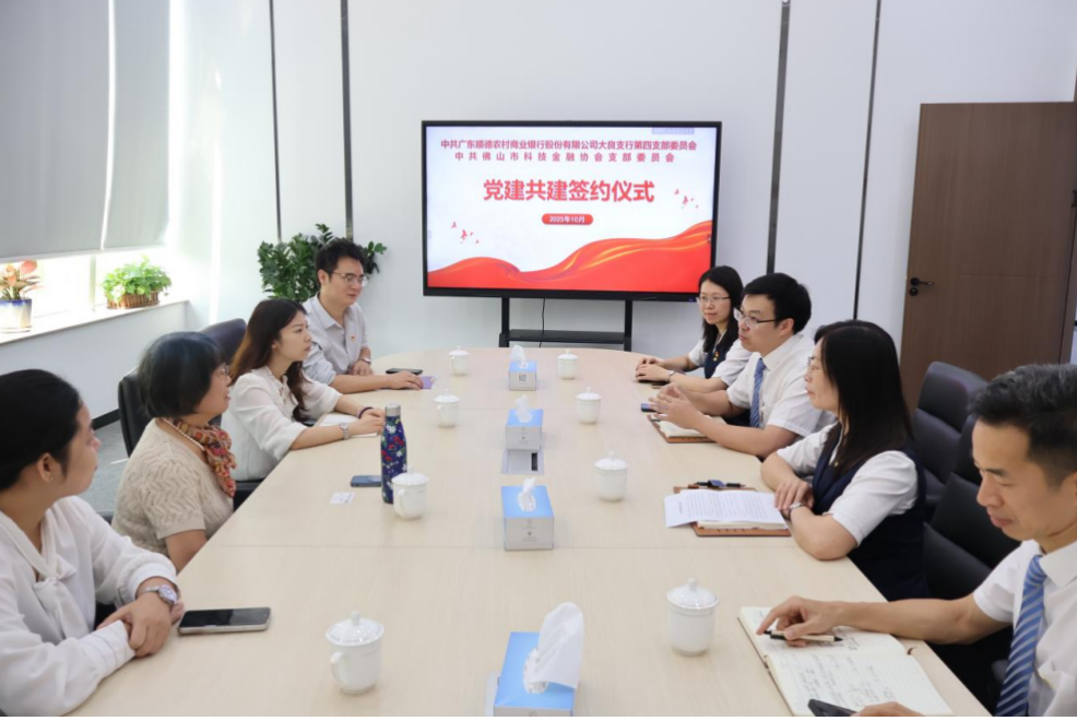 党建铸魂聚合力 银协携手启新程——顺德农商银行科技创新支行与佛山市科技金融协会党建共建签约仪式圆满成功10月17日上午,佛山市科技金融协会与顺德农商银行科技创新支行以党建为纽带,聚势谋远,联合举办“银协聚力,共创未来”结对活动,携手开启共建新篇章。此举旨在强化资源共享与战略协同,聚焦科技创新与产业升级领域,为区域经济高质量发展注入强劲金融动能。